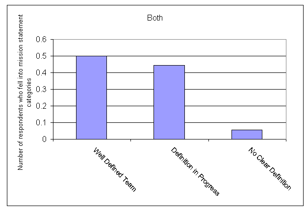 Practitioners who identified themselves as both corporate and consultant were split between the "well-defined team" and "definition in progress" categories. This is to be expected, as the mission and goals of the team have to cater to the type of customer they are working with.