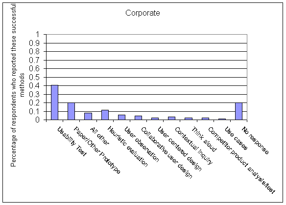 This graph indicates the percentage of the most successful methods used with developers by 86 survey respondents who indicated they are Corporate practitioners.